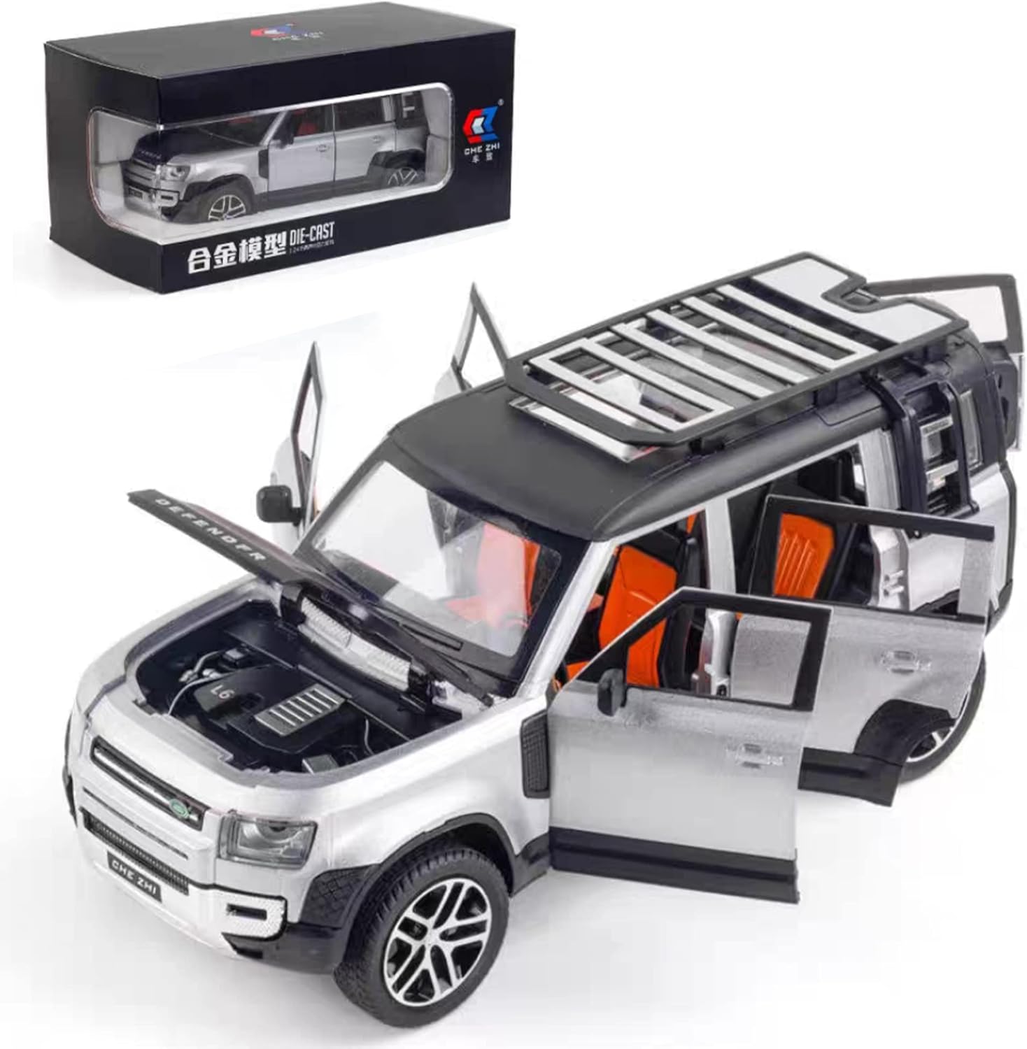 METAL DEFENDER JEEP 1:24 Scale Land Rover Defender Toy Cars, Diecast Model Luxury Metal Car Collection | Collectible Toys | Zinc Alloy Pull Back with Front and Back...