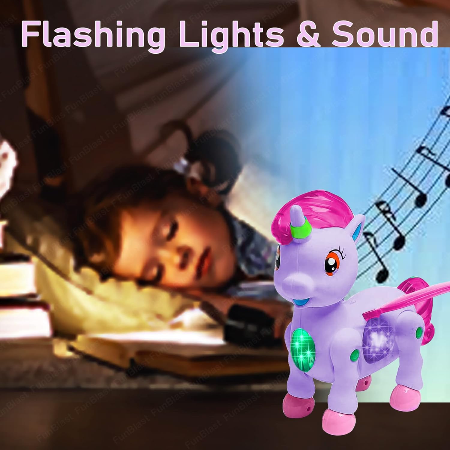 Walking Unicorn Toy - Musical Unicorn Horse Toy with 3D Light and Music for Kids, Animal Figure Toy for 3+ Years Kids, Boys, Girls, Musical Toys for Kids (Purple)